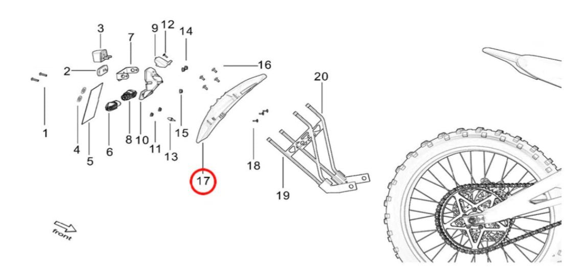 Genuine Surron tire hugger (aka fender, mud guard, splash protector).