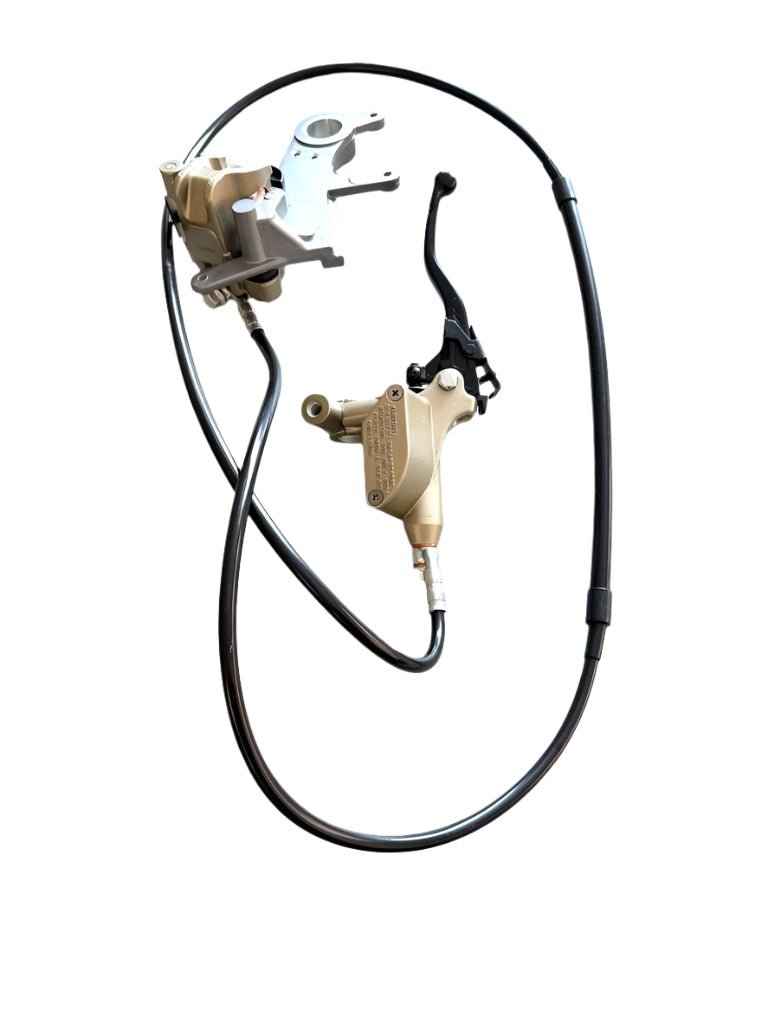 Includes lever, handlebar mount, reservoir, cable, brake line, caliper and brake pads.