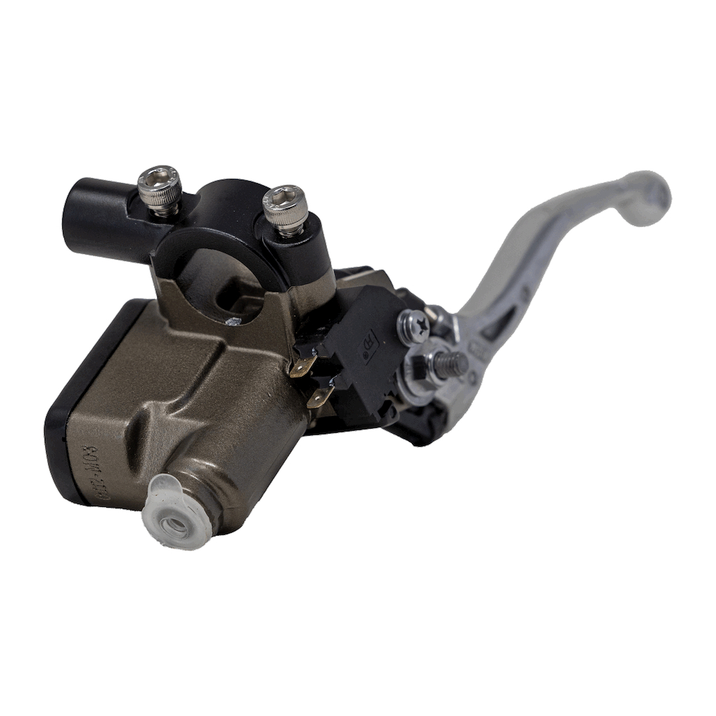 Stock assembly includes lever, handlebar mount, reservoir and brake switch.